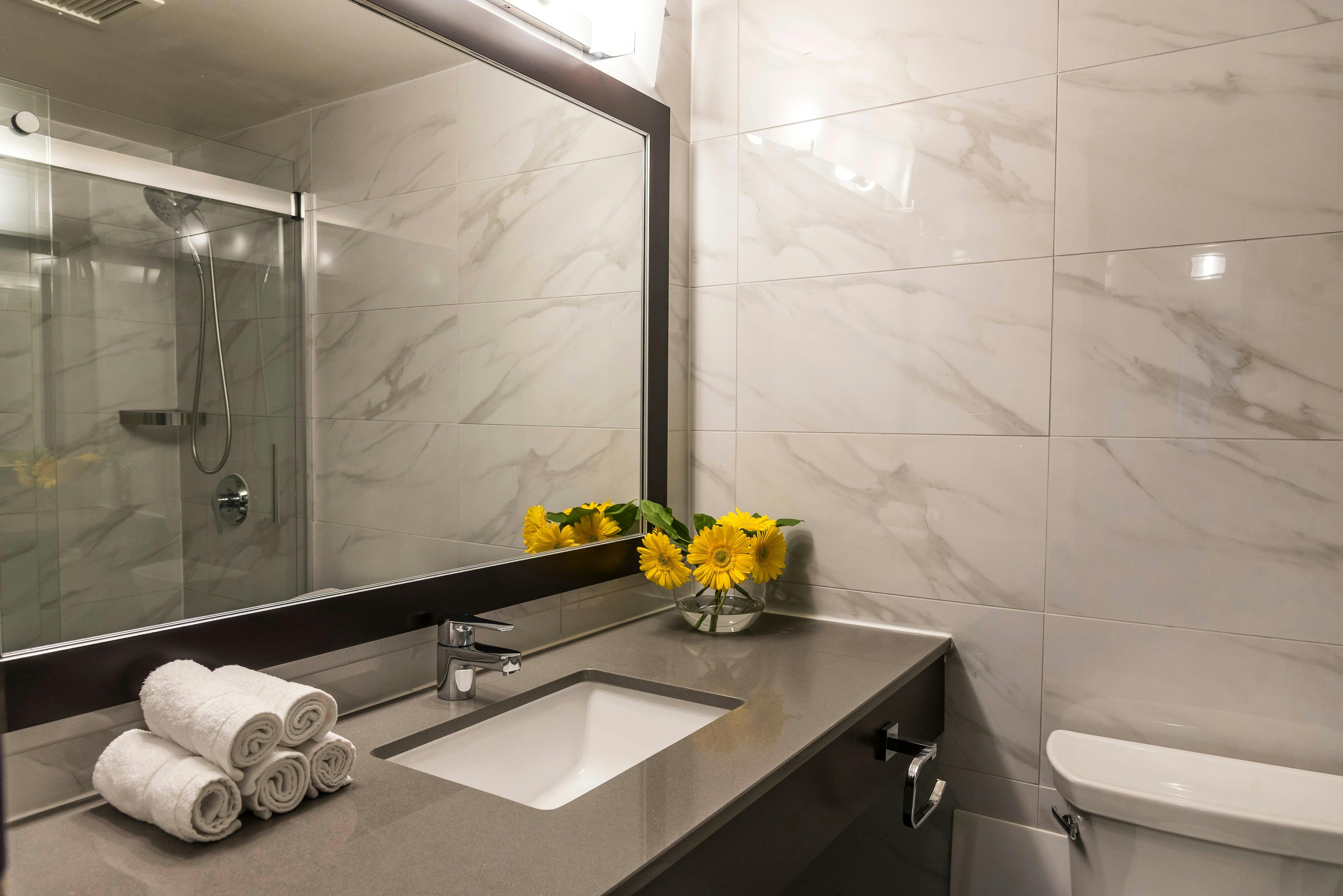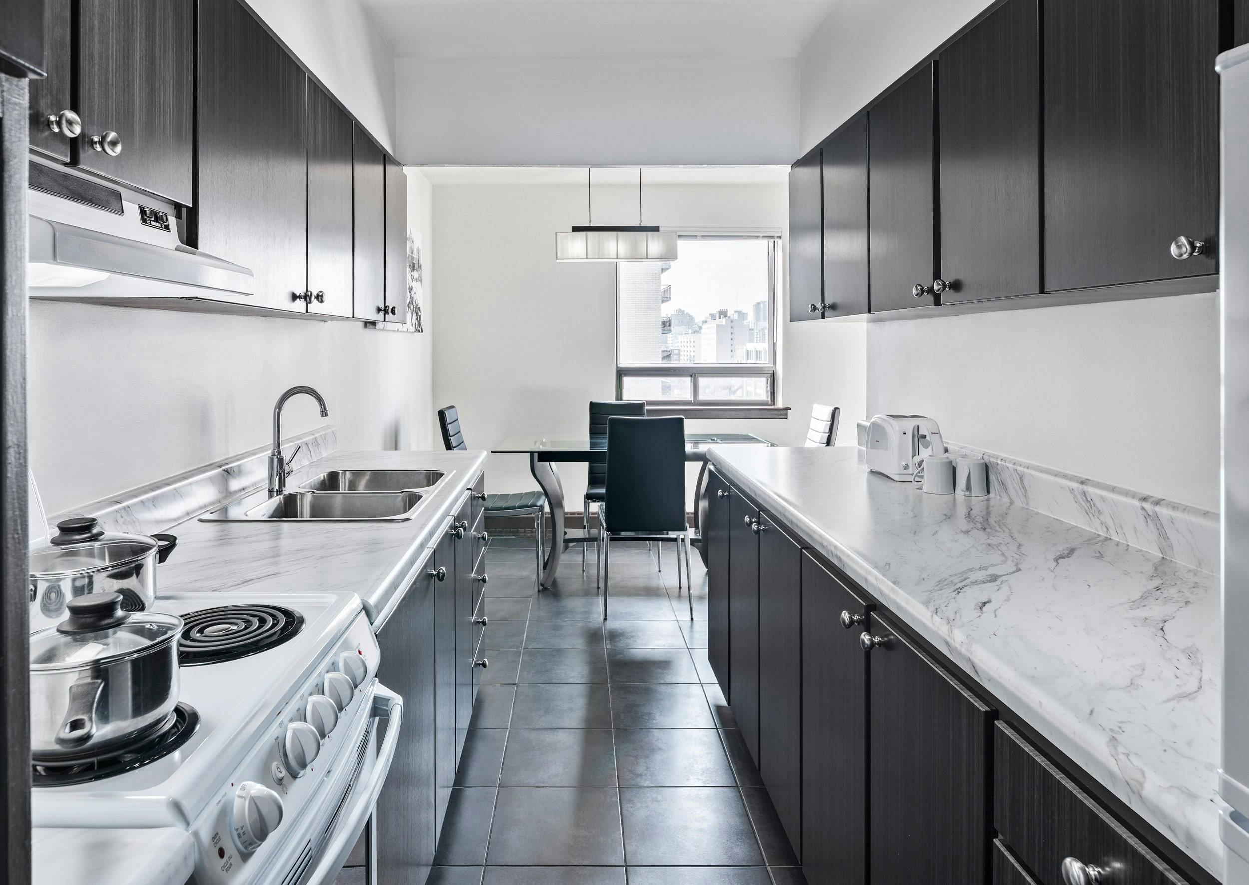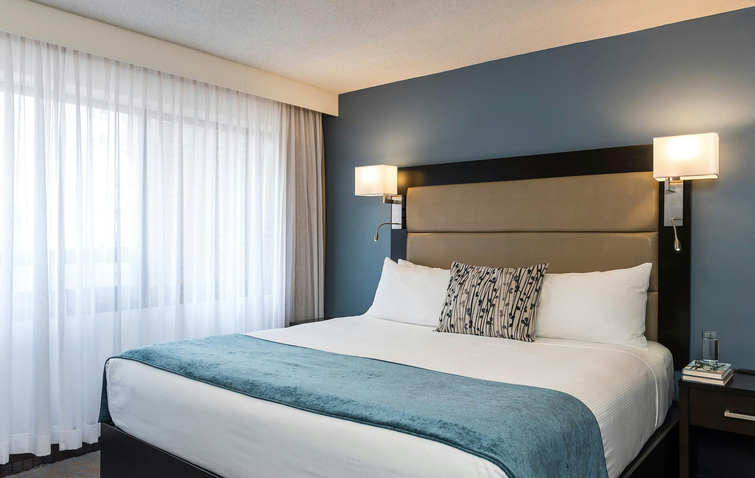 You'll be amazed at all the comforts included in each of our 920-square-foot Executive Suites, featuring a private bedroom with a king bed. This suite is designed for a luxury stay, allowing you to work and relax in contemporary comfort. From the full kitchen, dining room, and living room with two sleeper sofas to a spacious private balcony and one and a half bathrooms, this suite has everything you need for business stays of a night, a week, or more.